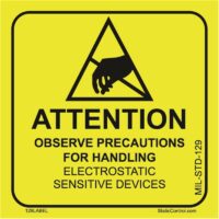 This SCS 129Label is a 2” by 2” self-adhesive label easy to use and provides the Mil-STD-129 ESD sensitivity symbol and attention message to warn that ESD control precautions are needed when opening package and handling contents.