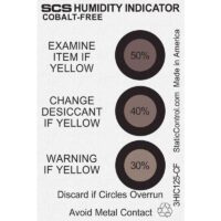SCS Humidity Indicator Cards (HIC) provide a simple, reliable way to monitor moisture exposure in sealed packaging. Each card is printed with moisture-sensitive spots that change color from blue to pink when exposed to specific relative humidity (RH) levels, allowing users to quickly assess whether moisture-sensitive devices may require baking.